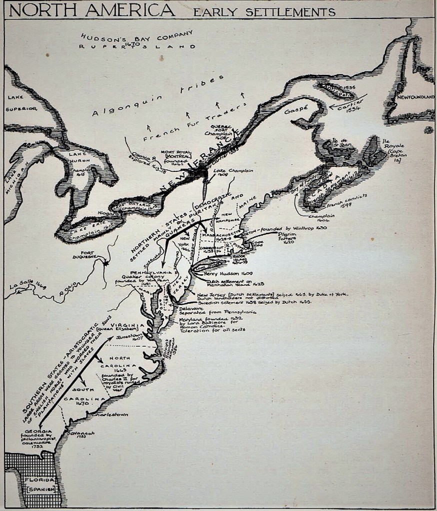Above: The Chesapeake Bay settlements in North America, 1607-1658.