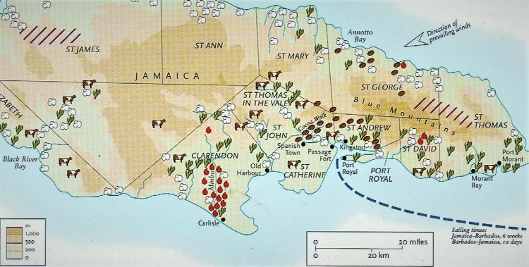 At the Restoration, peace was made with Spain and it was widely expected that Charles II would return Cromwell’s prize. In the event, the king decided to retain Jamaica and established a civil government designed to encourage private investors and secure the island’s future. However, in Jamaica, the English inherited little from the Spanish. As one early settler remarked, …