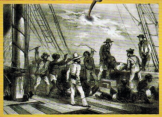 The first object which saluted my eyes when I arrived on the coast was the sea and a slave ship that was then riding at anchor and waiting for its cargo. These filled me with astonishment, which was soon converted into terror when I was carried on board. I was immediately handled and tossed up to see if I were sound by some of the crew, and I was now persuaded that I had gotten into a world of bad spirits and that they were going to kill me. Their complexions too differing so much from ours, their long hair and the language they spoke (which was very different from any I had ever heard) united to confirm me in this belief. … When I looked around the ship too and saw a large furnace of copper boiling and a multitude of black people of every description chained together, every one of their countenances expressing dejection and sorrow, I no longer doubted of my fate; and quite overpowered with horror and anguish, I fell motionless on the deck and fainted.