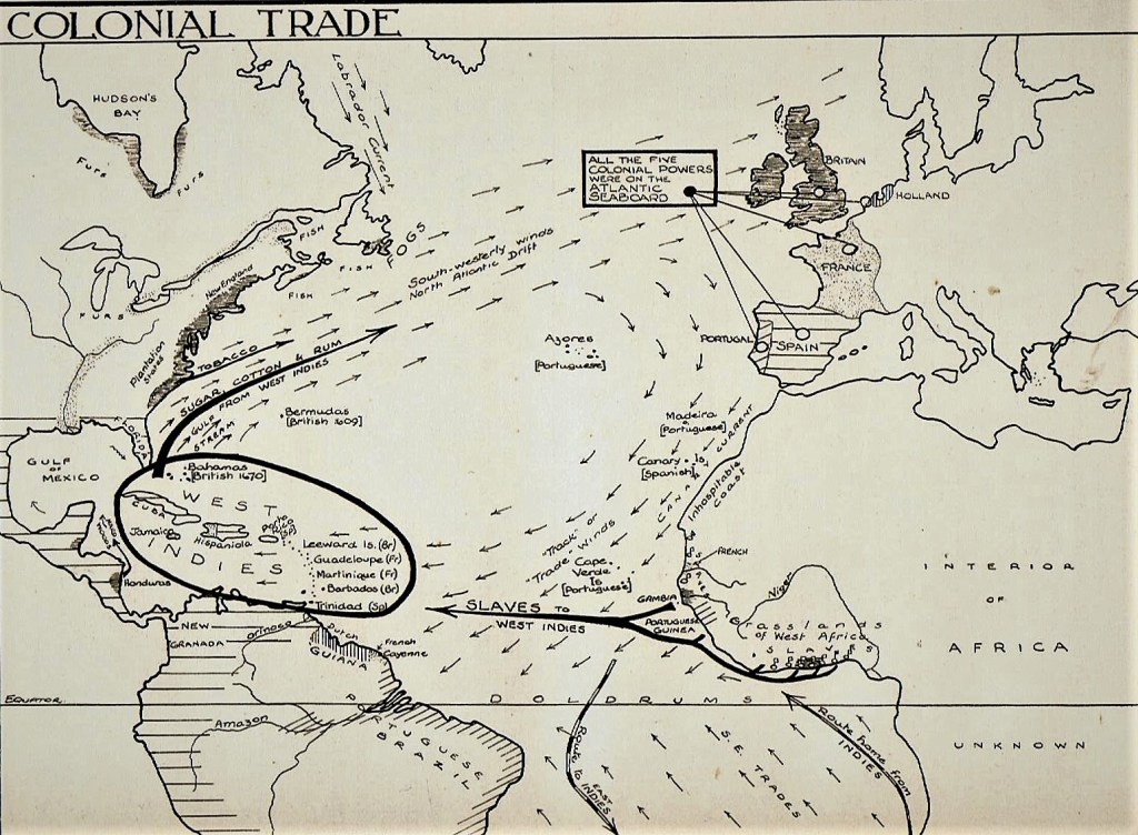 From the 1620s and for the next 150 years, Bristol was the apex of a trading triangle that was one of the most ruthless in the history of capitalism. British ships laden with cheap cotton goods, trinkets and Bibles sailed from Bristol and Liverpool for the west coast of Africa. They exchanged their cargo for a shipload of Black slaves who were then transported on the notorious ‘Middle Passage’, the second leg of the journey, to the sugar-bowl of the Caribbean.