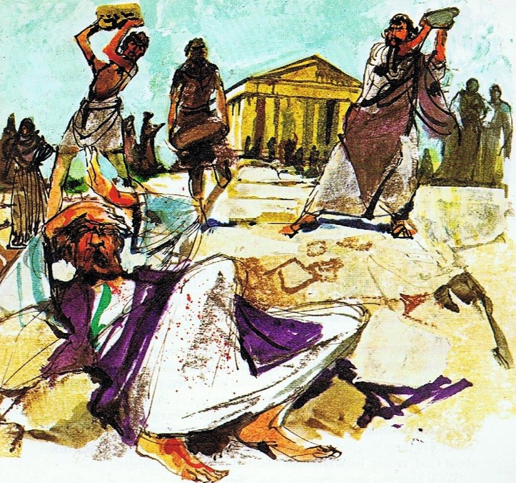 Then Jews from the towns where Paul and Barnabus had already been came along and told the crowd what they thought about them. They turned the crowd against them, and they started throwing stones at Paul. They thought they had killed him, and dragged him outside the town.