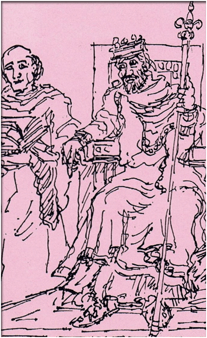 A pen and ink drawing by Arthur J Chandler, based on a picture in a school textbook.