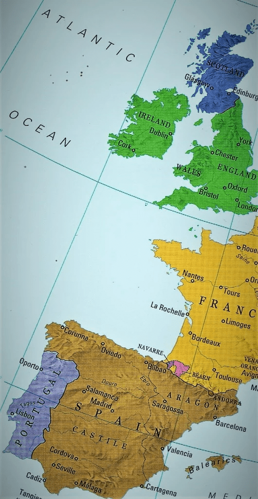 The late fifteenth century saw a consolidation of many European states and a coalescence of Europe into the contours that shaped it for almost four centuries until the crisis of nationalism in the nineteenth century. In the southwest, the Spanish state emerged with the final conquest of Grenada from the Muslims in 1492 and the union of the crowns of Aragon and Castille. The French kings continued to expand the royal domain until by 1483, only the Duchy of Brittany remained more or less independent, and even this was absorbed early in the fifteenth century, as shown on the map above. England, too, although it had lost its lands in France, except for Calais, by the Treaty of Arras of 1453 and was racked by civil wars from 1453 to 1471, began to emerge under the Tudor dynasty from 1485 onwards as a maritime power, whose interests in terms of territorial expansion lay outside Europe. Throughout Europe in the Middle Ages, national boundaries had been hardened. The concept of ‘statehood’ was beginning to emerge, becoming politically more significant than the “nation” itself in its original meaning of a people of common descent. This development is most marked in the consolidation of England, Scotland and France.