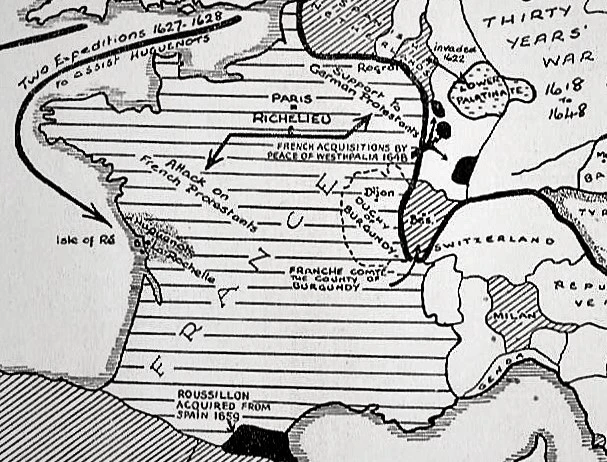 From the mid-1630s, the Franco-Spanish conflict had been the central focus of the Thirty Years’ Wars (1618-48). The war had begun as a battle for supremacy within the Empire between Catholics and Protestants in which outside powers had taken sides according to their dominant faith. But Catholic France’s ‘sympathies’ with the Protestant territories like the United Provinces changed the composition of the struggle. The pragmatic Richelieu identified the breaking of the Habsburg ring of territories surrounding France’s land borders as key to the rise of French power, overruling the arguments of the pro-Catholic ‘dévot’ faction in France. Richelieu attempted to weaken the Habsburgs by subsidising the Protestant princes, but after the catastrophic defeat of Sweden in 1634, France entered the war directly against Spain.