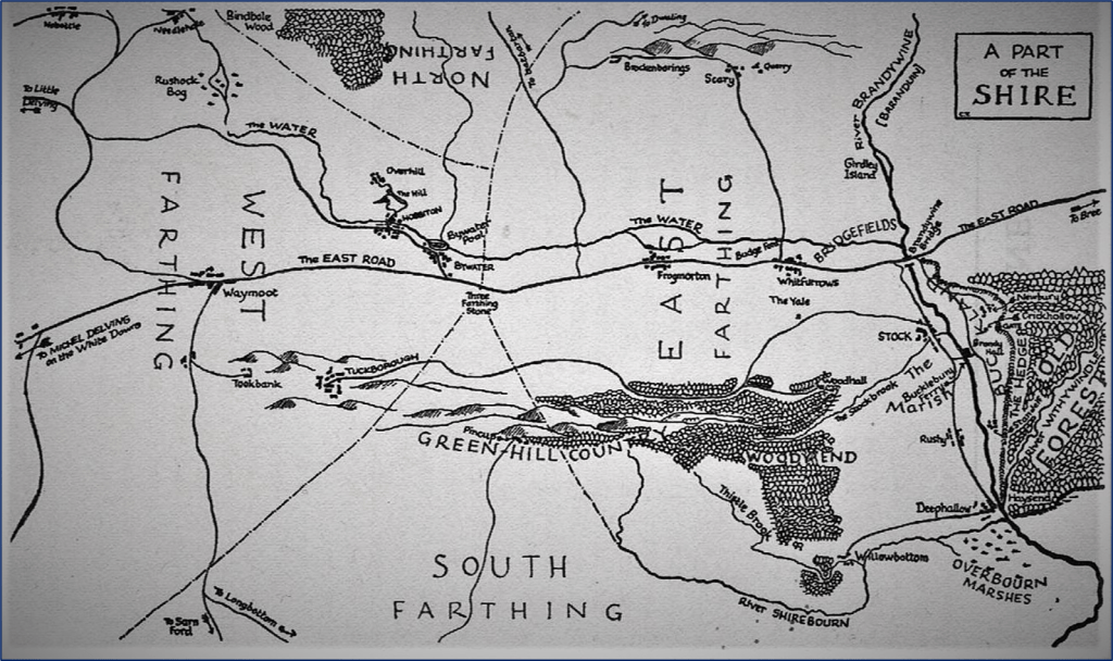 Tolkien provided a series of maps to accompany his tales, including the following maps of the Shire. These help us to envisage the scale of the dramatic landscapes he describes and the journeys he narrates.