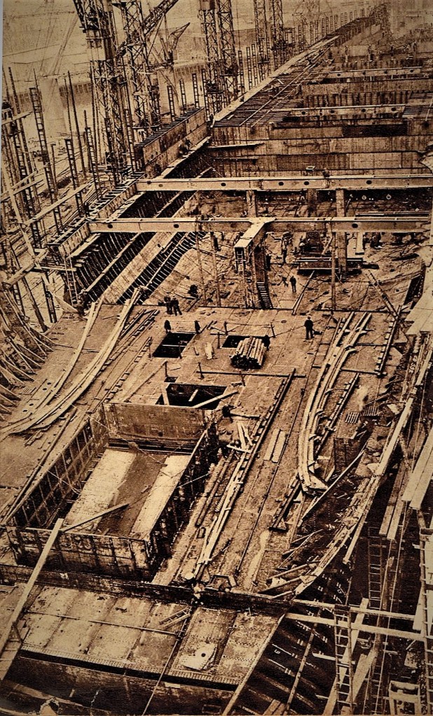 The Clydebank shipyard in Glasgow in 1931, building the Cunard liner, the Queen Mary.