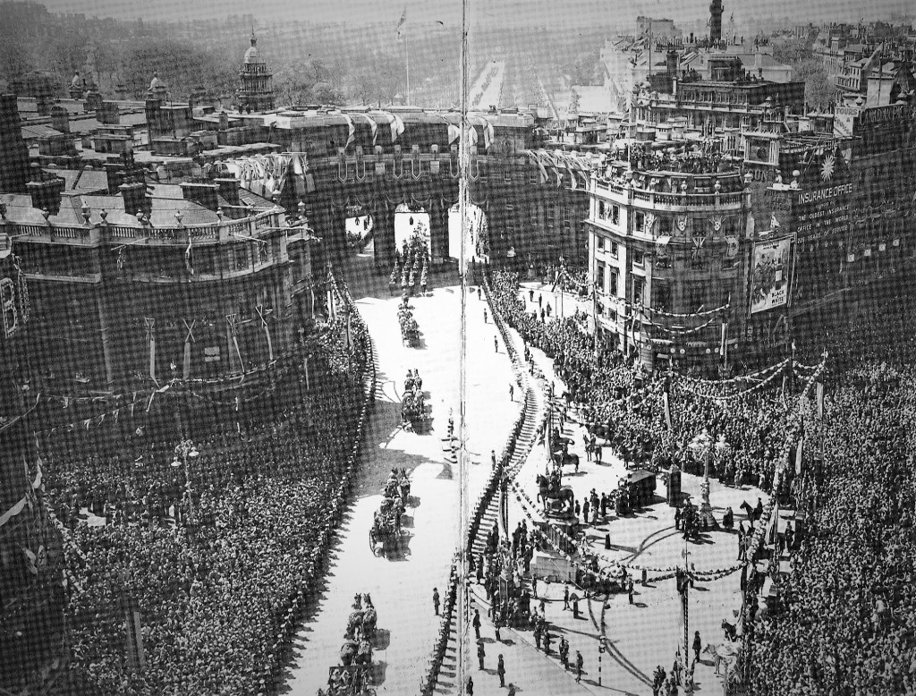 The Jubilee celebrations were marked by a genuine warmth of feeling, which surprised the King himself. Above, vast crowds cheer the procession as it returns to Buckingham Palace.