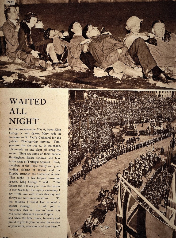 In 1935, King George V had been on the throne for twenty-five years. He was, by then, a genuine father figure: people felt that they and he had weathered some terrible storms together, so, in 1935, it was decided to make a fuss of King George. The Silver Jubilee was orchestrated in much the same spirit of democratic monarchism as the ceremonials of the previous twenty-five years. On the day of the Silver Jubilee itself, Their Majesties drove in procession to St Paul’s for a thanksgiving service and received loyal addresses from the Houses of Parliament. London was floodlit, something quite new; there were flags and banners everywhere, and the King later wrote in his diary that it was…