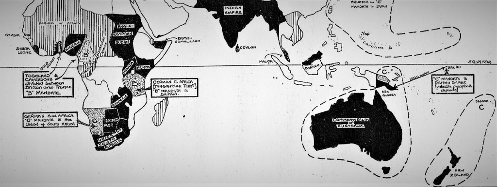 The British Empire in Africa, Asia and Australasia & The League of Nations Mandates: ‘B’ Mandates were chiefly in Africa, territories which ‘could not govern themselves.’ ‘C’ Mandates were isolated territories, such as the Pacific Islands. Australia invaded New Guinea in 1914.