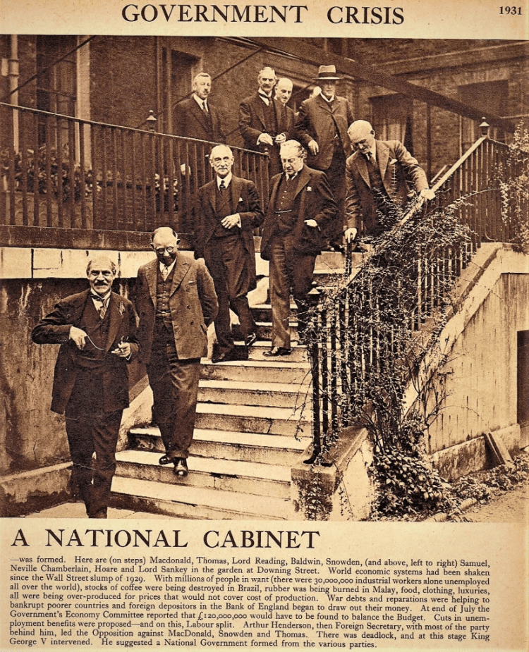 This last measure was opposed by more than half the Cabinet. They argued that not only had they failed in carrying out their promise to cut unemployment, but it had increased from one million to almost three million, and it was the least they could do as a Labour Government to continue to go on paying the ‘dole,’ the merest margin between life and starvation. So the Labour Cabinet dug its heels in, and on 24th August, with the entire British economy in crisis, including the Bank of England, MacDonald and the entire Labour Cabinet resigned. But when he went to Buckingham Palace to tender his resignation, the King would not accept it, at least not initially. He had, unusually, a proposal of his own to put to his Prime Minister.
