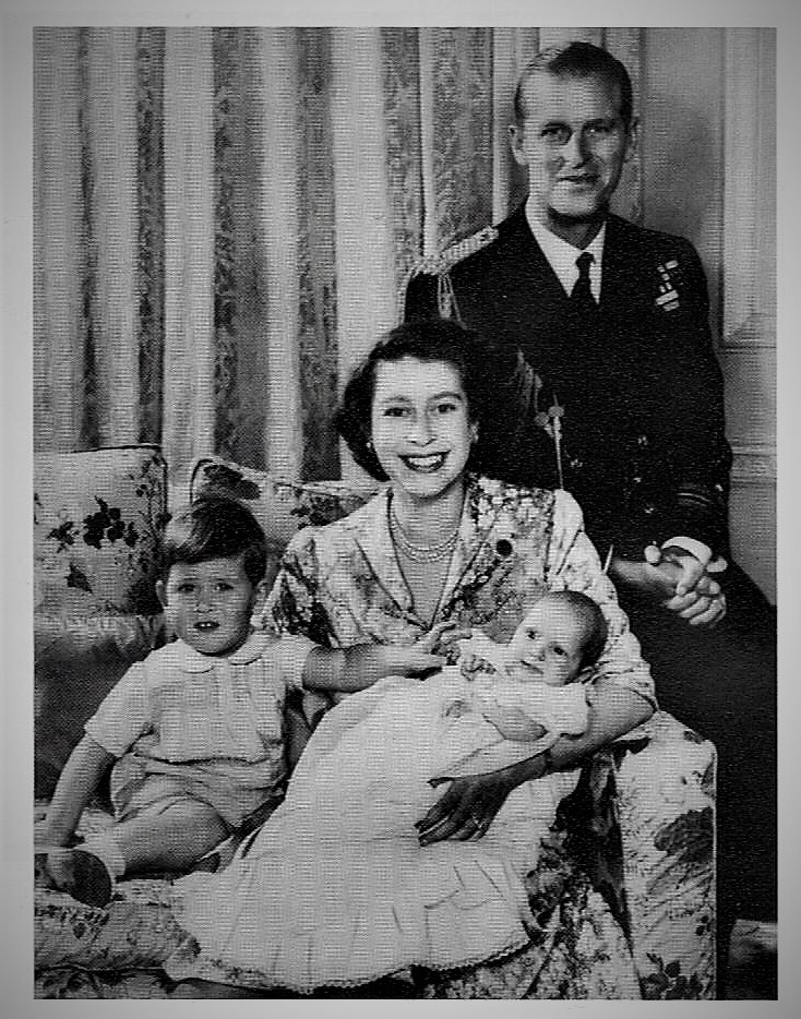Less than six months after making this speech, the Princess gave birth to the newly-married royal couple’s first son on 14th November 1948. An enthusiastic crowd gathered outside Buckingham Palace waiting for the announcement of the birth of the second-in-line heir to the throne. Two years later, his sister, Princess Anne was born (see the photo below). After Elizabeth succeeded to the throne, two more boys, Prince Andrew (b. 1960) and Edward (b. 1964) were added to the new Royal family.