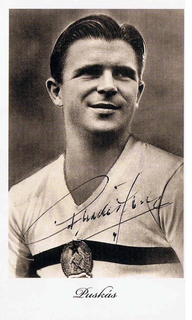 However, three days after the team left Hungary, the Soviet tanks streamed across the eastern border to put down the uprising. The Honvéd players did everything they could to get their families out of the country. Puskas’s wife and their four-year-old daughter managed to cross into Austria on 1st December. The first leg of the Athletico Bilbao match had finished 3-2 to the Basques, and the return leg took place on 20th December in Brussels due to the volatile situation in Budapest. It finished 3-3, so Honvéd were out. Understandably, many of the players, including Kocsis and Puskás himself, decided against returning home to Budapest, preferring to ply their trade in the ‘free world’. In December, two years to the day of the Honved match, a benefit match for Hungarian refugees was played at Molineux, again under floodlights, with ‘Red Banner’ (MTK) Budapest as opponents. The team included four internationals, with Hidegkúti at centre-forward, who combined brilliantly with Palotás.