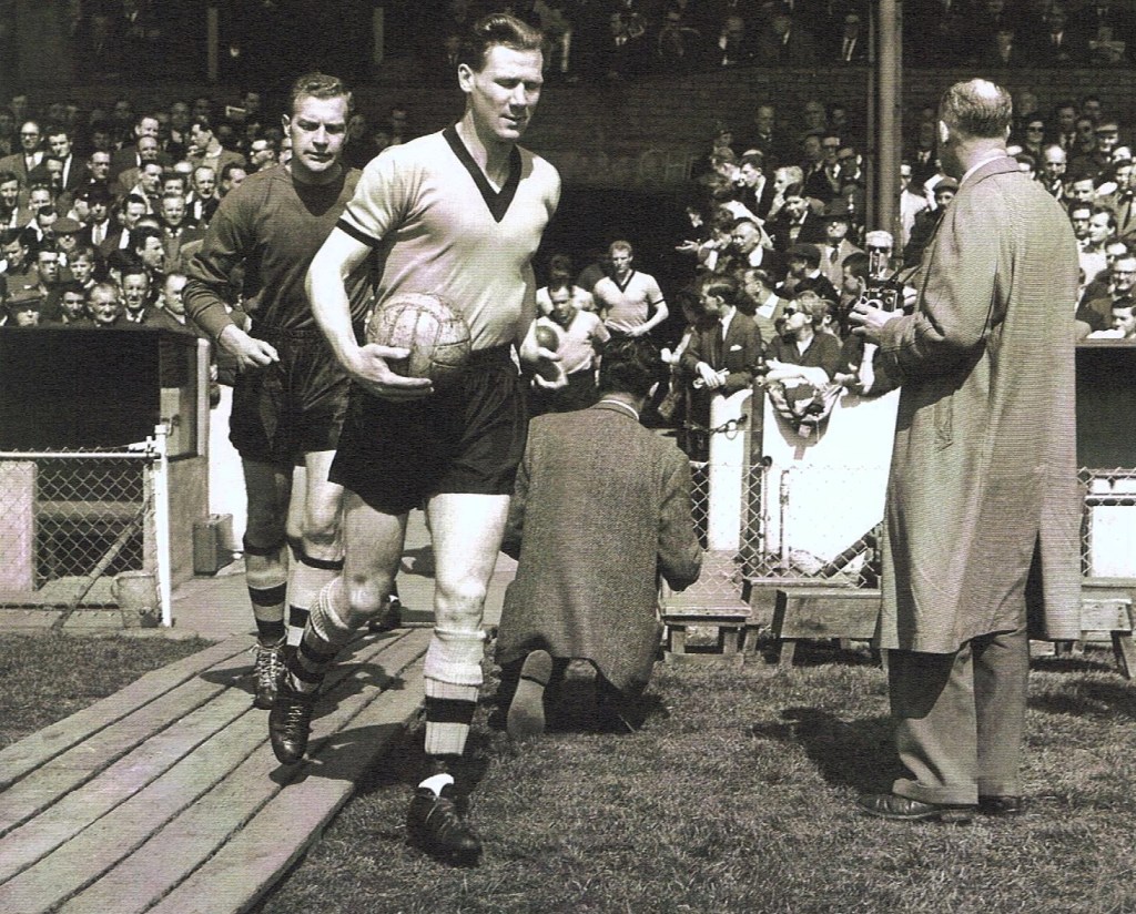 The two men who led the Wolves’ ‘Golden team’ of the fifties were Stan Cullis as the Manager and Billy Wright as skipper. The success both had with Wolves is known and recognised by the statues outside Molineux and the two Stands named after them. Cullis, a fine player in his day, managed Wolves in all five-trophy successes. He was, like his manager when playing, Major Buckley, a strong disciplinarian and a coach who insisted on fitness first and foremost. Cullis was undoubtedly the best Wolves manager ever, and most recent and current fans would say that he remains so. But the start of the 1959-60 season was marred for him when the Wolves legend Billy Wright dropped a bombshell by announcing his retirement, aged thirty-five. He reportedly told a reporter;