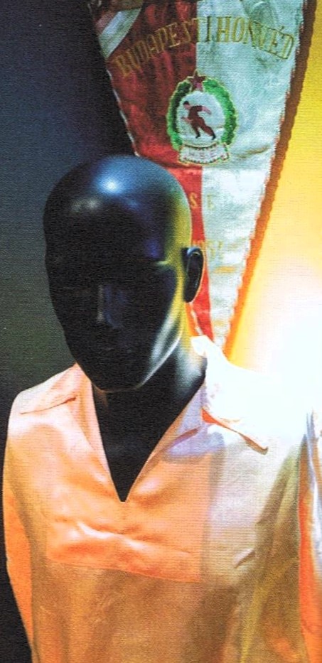 The floodlit friendly games were all ‘iconic’ but especially the match played on 13th December 1954 against Honved of Budapest, so the golden shirt of ‘poor man’s silk’ represents that famous occasion. It was discovered during a ‘Champions of the World’ project, funded by the national lottery to celebrate the sixtieth anniversary of the iconic Wolves v Honved match. Peter Crump, whose brother found the shirt, writes: