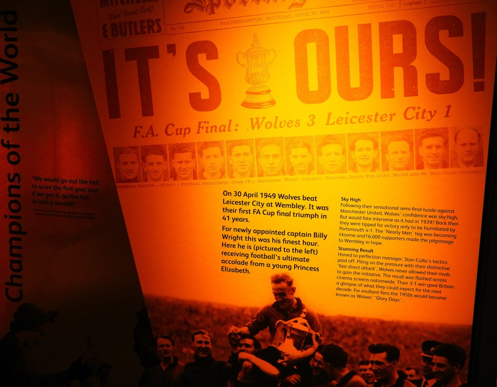 The following season, 1948-49, Cullis delivered Wolves’ first major trophy since 1908, when, a full decade after losing to Portsmouth, they finally won the FA Cup, beating Leicester City at Wembley. In the following two seasons, however, there was a significant slip in Wolves’ form. But Wolves were much improved in that season, as they returned to the top three. Over the previous ten seasons (excluding the war break), Wolves had finished second three times, third twice, fifth twice and sixth once. The 1952-53 season saw a revival in the club’s fortunes as they finished third in the League, and they continued to secure their place among the top clubs in the country, though they had to wait until 1953-54 to become First Division Champions.