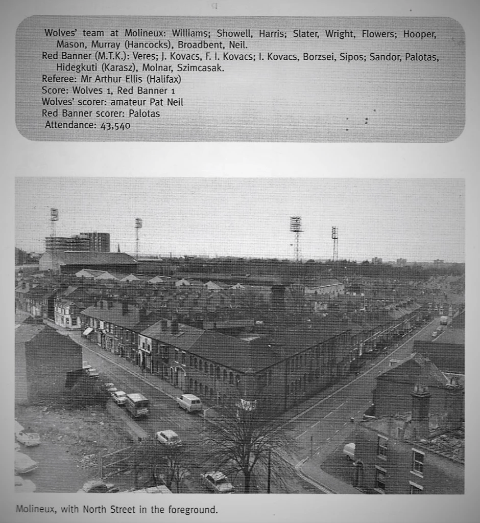 Wolves drew level from a Hooper corner, which was palmed away by Veres, but only as far as Neil who had drifted outside the goal area and was unmarked. His smartly hit shot passed through the ruck of players and beat Veres on the line. The cool, calculated football of MTK sometimes became over-complicated. They were all too frequently guilty of playing one pass too many. At half-time, the talented Hidegkúti was replaced by Karasz, but the game was far from dull, however, with both goalkeepers acquitting themselves well by making strings of acrobatic saves.