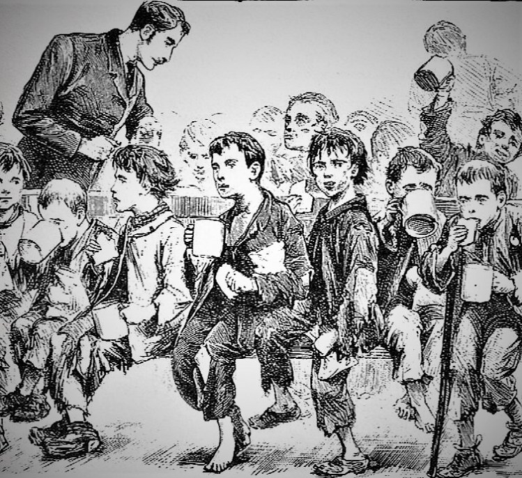 In many cases, because the children are so destitute that they cannot be taught, we give food – generally soup, occassionally meat, and good wholsome bread, sometimes coffee or cocoa, and bread and cheese. In one school they feed about two hundred twice or thrice a week … The children who come to the schools pay nothing; all the Ragged Schools are quite free, being intended only for the destitute.
