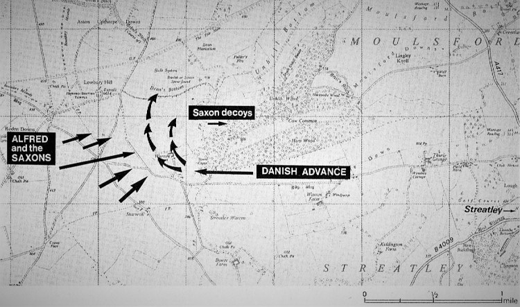 Beornwulf was no novice at the art of war; whatever qualities he might have lacked, tactical appreciation would not be among them. He would know very well that if he made his approach to the Wansdyke too obvious, a suitable reception would be there to meet him. He would therefore have wished to have achieved one of the first principles of war, deception of the enemy, and having come down the Ridgeway rapidly, possibly with the advantage of surprise, he would have then sent a brief a small party ahead to suggest that he was marching by the quickest possible route to Salisbury. At that point Egbert would throw everything in his way, he hoped, but Beornwulf by a swift change of direction would be over the Wansdyke and on Egbert’s flank, if not actually behind him. However, although heavily outnumbered, Egbert chose to attack first and after a protracted struggle, his army gained the field and a decisive victory. Mercian losses were heavy for, in the words of the Chronicle,