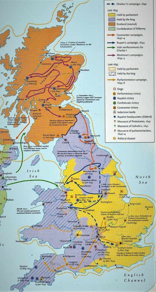 Oddly enough, in the context of the early modern British history of the relations between the two kingdoms, by the winter of 1646-7, it was England that wanted to be left alone, and parliament paid the Scots four hundred thousand pounds to go away, leaving the king behind. The Scottish commissioners then accepted, in September 1646, a down payment of half the agreed amount as the price of withdrawing Leven’s army. The Scottish parliament was given assurances from Westminster that no peace would be concluded without the consent of both kingdoms, and that meanwhile the form of government in England would not be changed. The transaction may have appeared unappealing, but the the Scots had gone to war for the Covenant, and in face of his persistent rejection of it they were entitled to say ‘no Covenant, no pikes and muskets’. In this way, Parliament secured the person of the king by paying off the Scots for their participation in the war, and opened direct negotiations with Charles for the restoration of his throne. The wielder of power within England, however, was not parliamemt but the army: a massive military machine which had never been seen before in Britain. When the fighting was more-or-less done, the men of this hungry, angry and poorly-paid army were perfectly prepared to mutiny, seize their officers, march to new quarters without permission and refuse to decamp. In the last years of the first Civil War, the New Model Army at least had also been socially transformed and with the officer corps drawn from the sections of society that were much broader and lower down the pecking order than anything thought possible before 1645. As Simon Schama has commented, … Something new had been unloosed on the English polity: a reading, debating soldiery with a burning desire to settle accounts with its parliamentary paymasters.